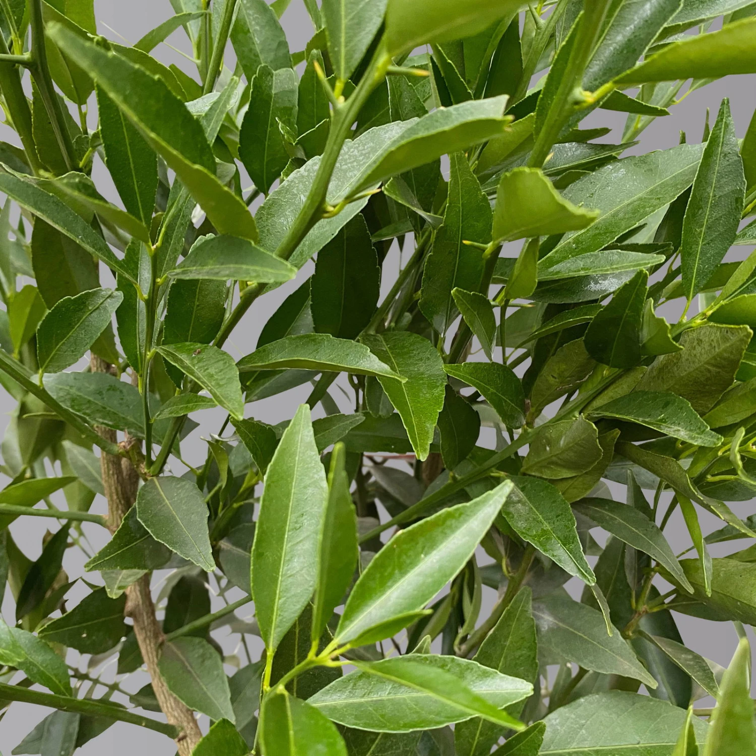Die länglich ovalen, vorne zugespitzten Blätter des Mandarinenbaumes (Citrus reticulata) begeistern das ganze Jahr über mit satt grüner Farbe. Das Mandarinenbäumchen wächst von Natur aus bei ausreichender Helligkeit kompakt und dicht buschig. Sollten es doch etwas locker wachsen, können Sie durch Rückschnitt die Verzweigung anregen und somit die Krone kompackter gestalten. Die mediterrane Kübelpflanze kann eine Wuchshöhe von 1,50 -2,50 Metern erreichen.