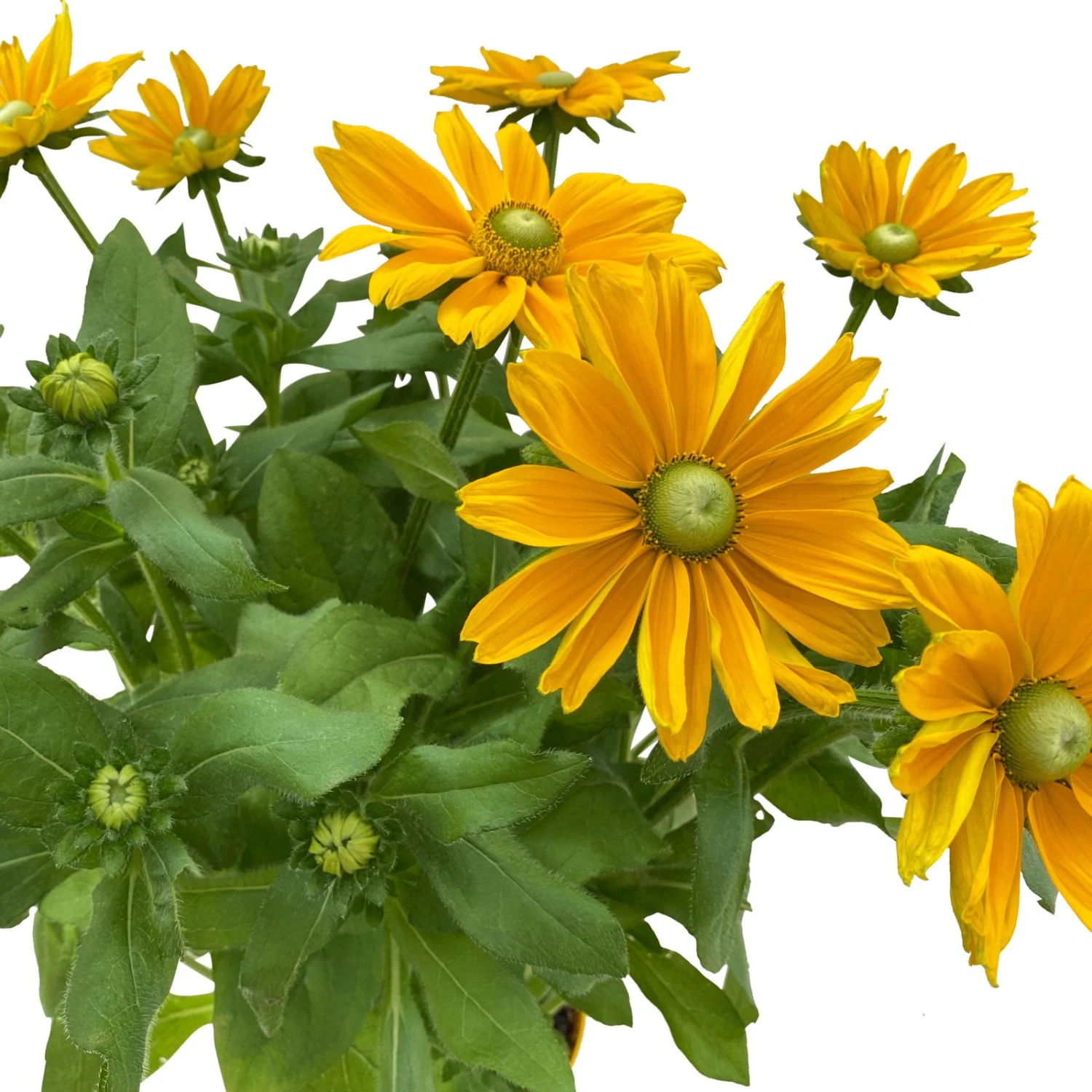 Je nach Sorte varrieren die grünen Blätter des Sonnenhuts (Rudbeckia hirta). Ursprünlgich ist der Sonnenhut in Nordamerika behiematet. Die einjährige Rudbeckie wächst buschig aufrecht und kann eine Wuchshöhe von 80 – 100 cm erreicht werden.